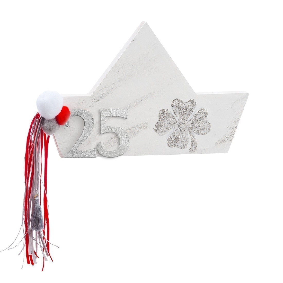 Χριστουγεννιάτικο ξύλινο διακοσμητικό καράβι σε λευκές-ασημί glitter αποχρώσεις.