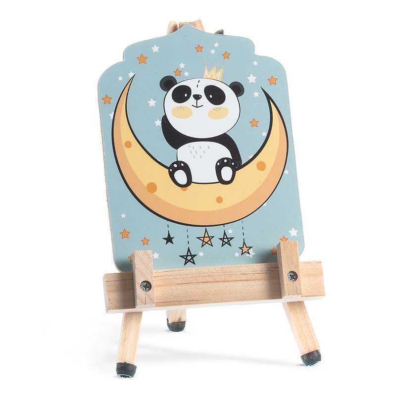 Ξύλινο καδράκι panda σε natural καβαλέτο.