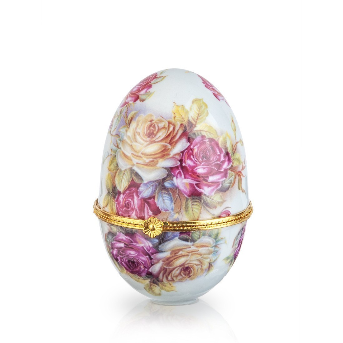 Πορσελάνινο αυγό-μπιζουτιέρα με λουλούδια και χρυσό κούμπωμα.