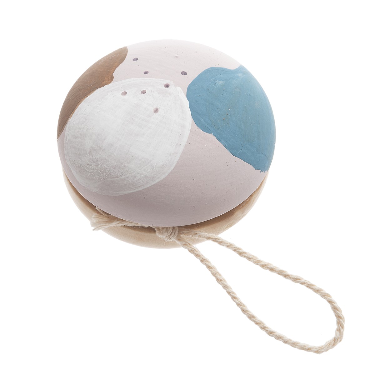 Ξύλινο ζωγραφιστό γιογιό σε βάση λιλά και οβάλ σχήματα.