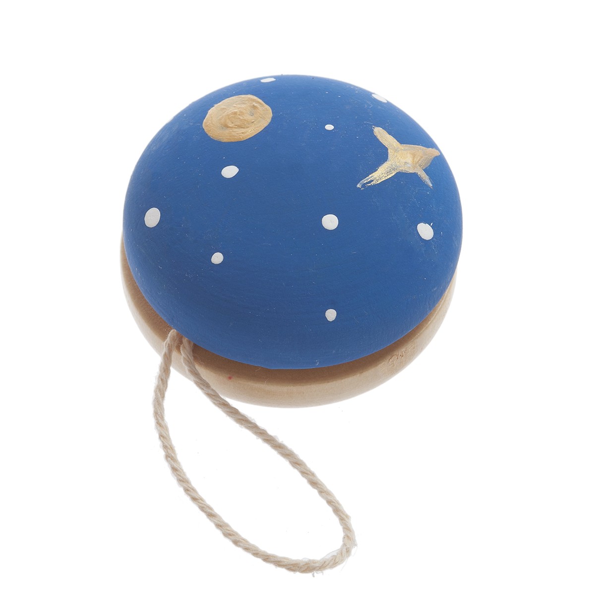 Ξύλινο ζωγραφιστό γιογιό σε βάση τιρκουάζ και κουκίδες λευκές.