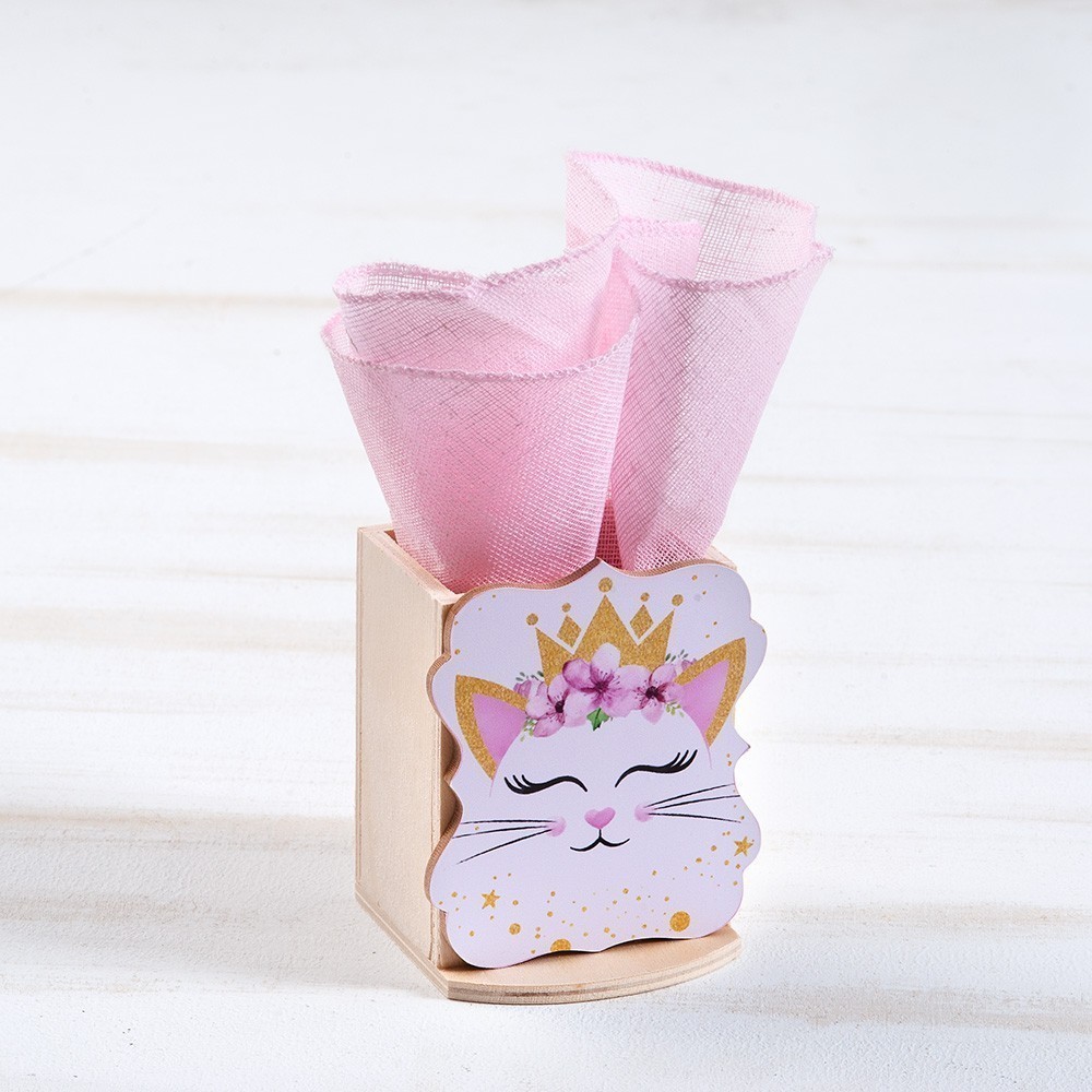 Ξύλινη μολυβοθήκη σε natural χρώμα. Διακοσμημένο με κοπτικό Γάτα.
