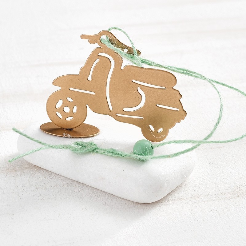 Είναι στολισμένο με χρυσή μεταλλική βέσπα,βεραμάν κορδόνι και χάντρα.