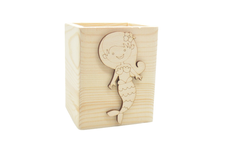 Μπομπονιέρα Ξύλινη Μολυβοθήκη μικρή γοργόνα με διάσταση 8 x 8 x 10 εκ.