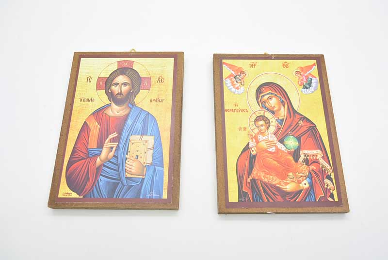 Μπομπονιέρα Βάπτισης εικόνα ξύλινη. Η τιμή περιλαμβάνει το δέσιμο της μπομπονιέρας με 5 κουφέτα. Διαστάσεις 7 x 10 εκ.