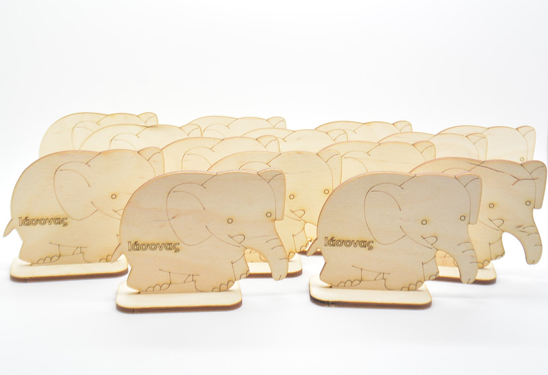 Μπομπονιέρα Ξύλινο ελεφαντάκι με βάση. Η τιμή αφορά δεμένη μπομπονιέρα με 5 κουφέτα αμυγδάλου ή 9 smarties. Μπορεί να γραφτεί το όνομα του παιδιού σας.Διάσταση 7,6 x 10 cm.