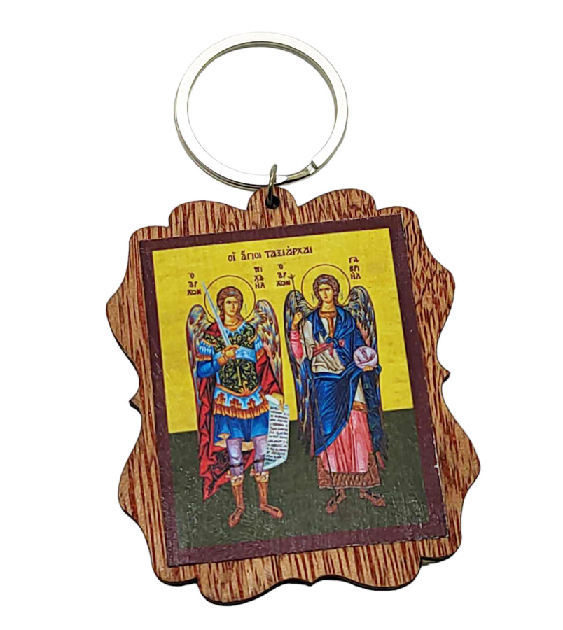 Ξύλινη εικόνα μπρελόκ με επιλογή αγίου φτιαγμένη με τεχνική decoupage με διαστάσεις 7 x 6 εκ η εικόνα και 10 εκ με τον κρίκο. Η τιμή αφορά μόνο το αντικείμενο.