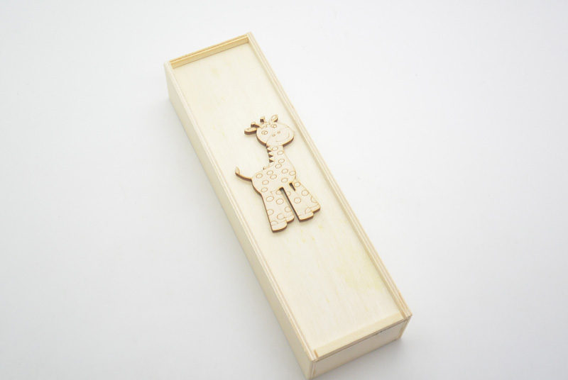 Ξύλινη Κασετίνα καμηλοπάρδαλη με διάσταση 20cm x 6cm x 3.4cm.