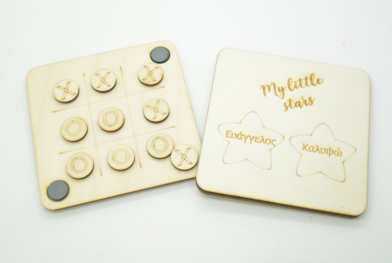Ξύλινη Τρίλιζα my little star για δύο παιδιά μαγνητικό κουτί. Διάσταση 12 x 12 cm. Μπορεί να χαρακτεί όποιο θέμα θέλετε.