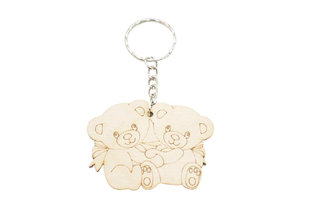 Ξύλινο Μπρελόκ αρκουδάκια. Διάσταση μπρελόκ 10.5 εκ και αρκουδάκια 6 εκ.