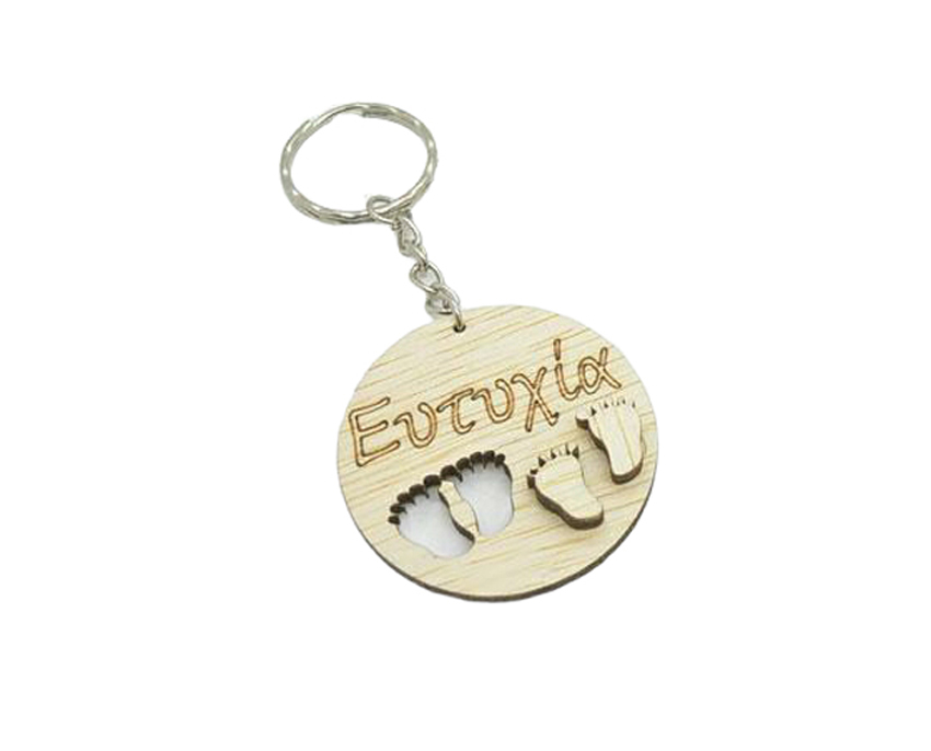 Ξύλινο Μπρελόκ ευχές πατουσάκια με διάσταση 11 εκ. Η τιμή αφορά σκέτο το μπρελόκ.