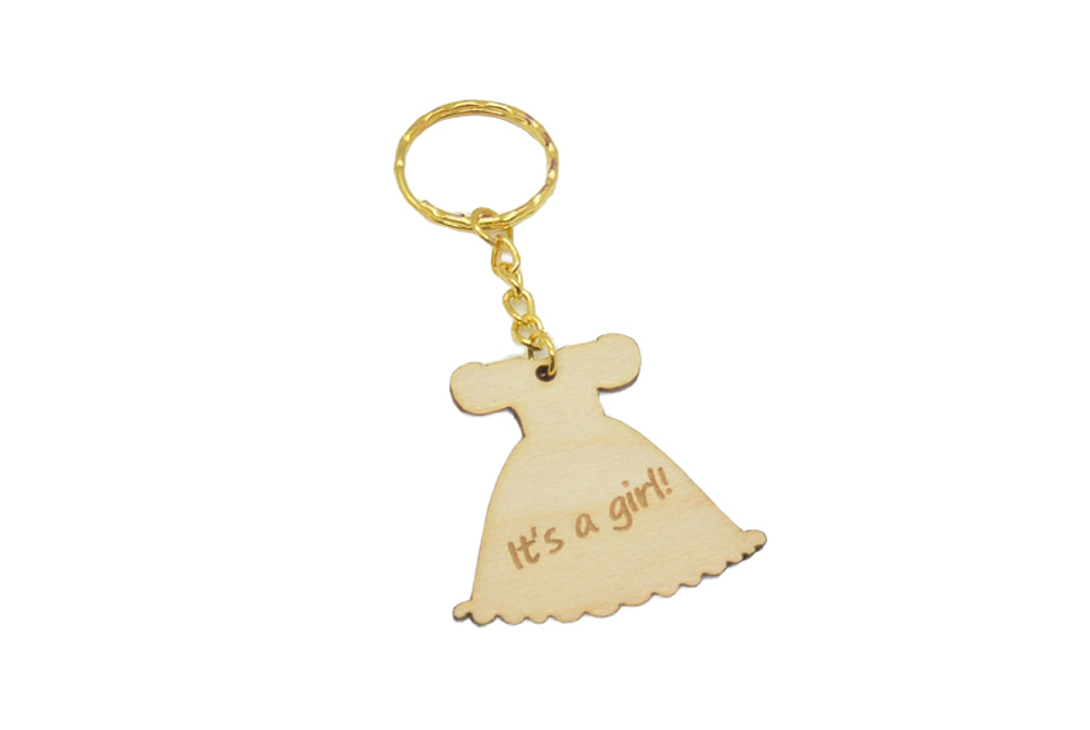 Ξύλινο Μπρελόκ φορεματάκι its a girl με διάσταση 12 εκ με τον κρίκο. Μπορεί να γίνει κερασμά γέννας.