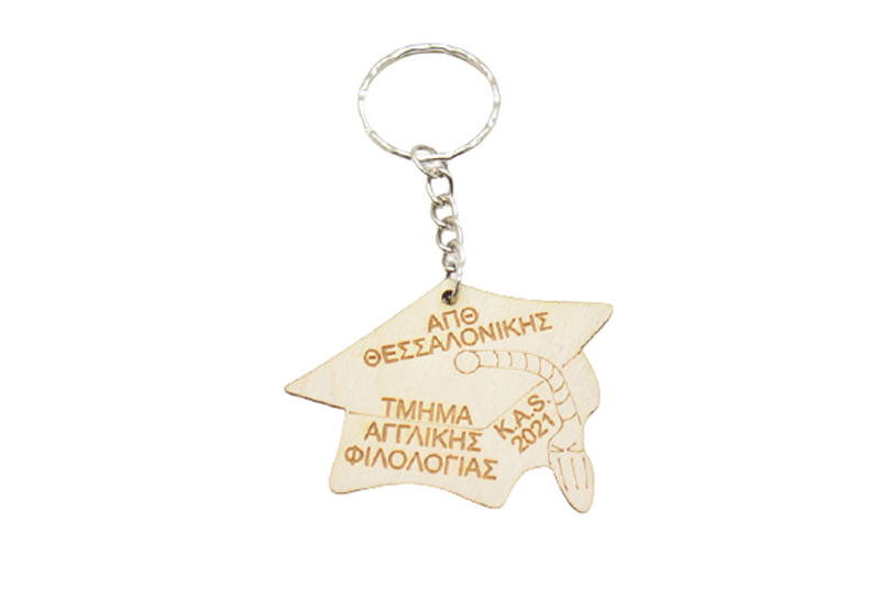 Ξύλινο Μπρελόκ καπέλο αποφοίτησης με χάραξη της επιλογής σας. Με διάσταση 10,6 εκ μήκος με τον κρίκο και διάσταση καπέλου 6 x 4,6 εκ.