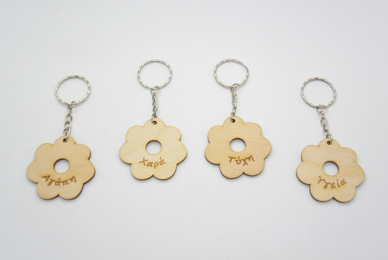 Ξύλινο Μπρελόκ λουλουδάκι με ευχές. Διάσταση μπρελόκ 11 εκ και λουλουδάκι 5 εκ. Μπορείτε να επιλέξετε όποια ευχή θέλετε.