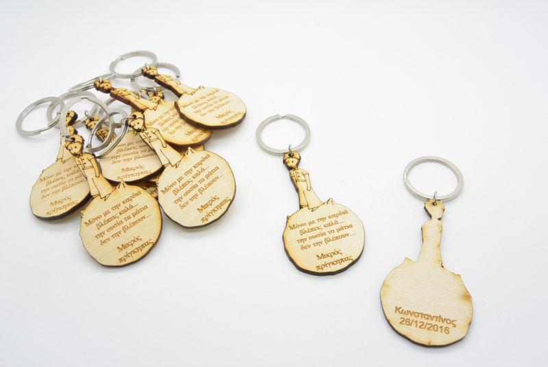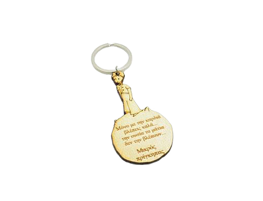 Ξύλινο Μπρελόκ μικρός πρίγκιπας με χαραγμένο κείμενο στα Ελληνικά και στο πίσω μέρος το όνομα του παιδιού. Η τιμή αφορά το μπρελόκ. Ελάχιστη ποσότητα 50 τεμάχια.