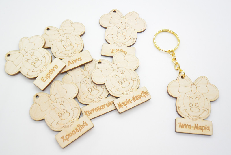 Ξύλινο Μπρελόκ Minnie με ένα ή πολλά διαφορετικά ονόματα με διάσταση 12 εκ. Γράψτε τα ονόματα των παιδιών στα σχόλια στο καλάθι σας.