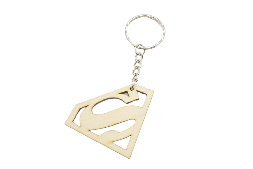 Ξύλινο Μπρελόκ σούπερμαν. Διάσταση μπρελόκ 12 εκ και σήμα 6 εκ.