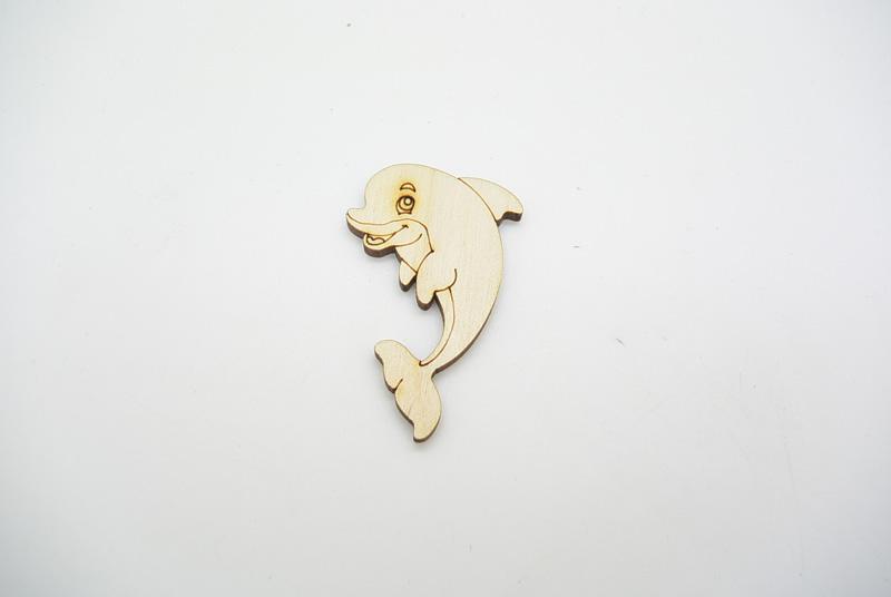 Ξύλινο Διακοσμητικό δελφίνι σε φυσικό άβαφο με διάσταση 7 x 4.6 εκ. Συσκευασία 50 τεμαχίων. Η τιμή αφορά το τεμάχιο.