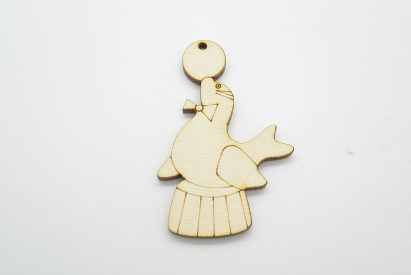 Ξύλινο Διακοσμητικό Φώκια τσίρκου με διαστάσεις 8 x 5,2 εκ. Η τιμή αφορά το τεμάχιο με ελάχιστη ποσότητα παραγγελίας 50 τεμάχια.