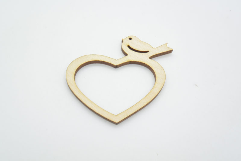 Ξύλινο Διακοσμητικό καρδιά με πουλάκι σε φυσικό άβαφο με διάσταση 8 x 7 εκ. Συσκευασία 50 τεμαχίων. Η τιμή αφορά το τεμάχιο.