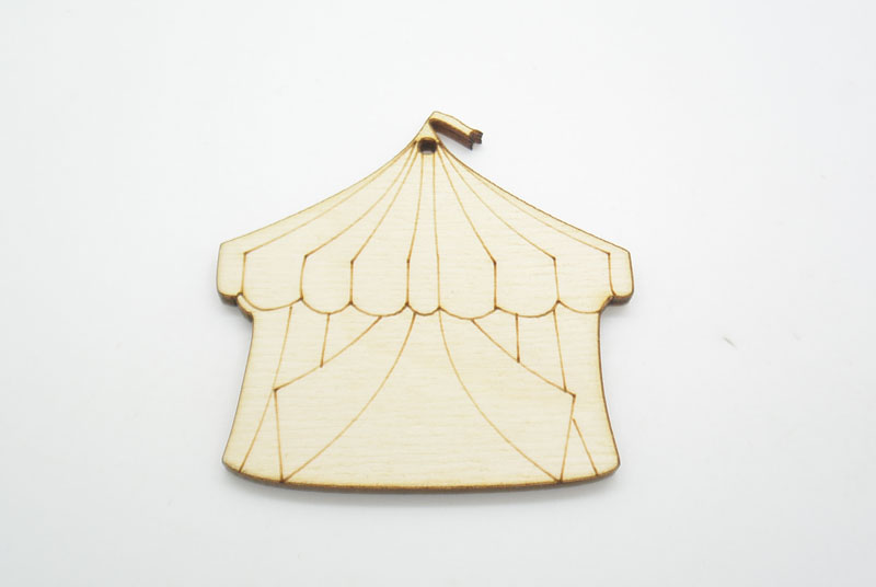 Ξύλινο Διακοσμητικό Σκηνή τσίρκου με διαστάσεις 8 x 7,7 εκ. Η τιμή αφορά το τεμάχιο με ελάχιστη ποσότητα παραγγελίας 50 τεμάχια.