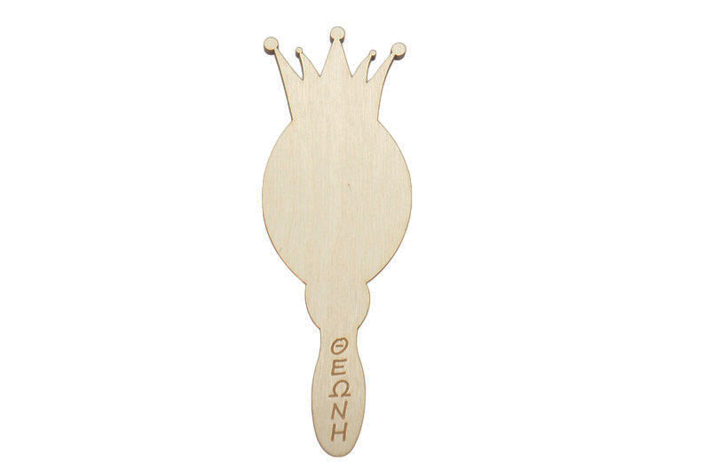 Ξύλινο Διακοσμητικό σχέδιο καθρεφτάκι με κορώνα και το όνομα του παιδιού για ντεκουπάζ ή κατασκευές με διαστάσεις 15 x 5.2 εκ. Για μεγάλες ποσότητες καλέστε για τιμή.