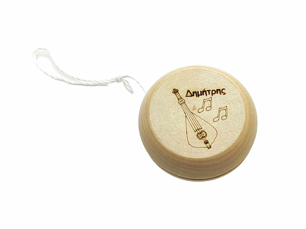 Ξύλινο ΓΙΟ ΓΙΟ κρητική λύρα με το όνομα του παιδιού σας. Μπορεί να γίνει σε ότι σχέδιο ή θέμα θέλετε. Διάμετρος 5,5 εκ.