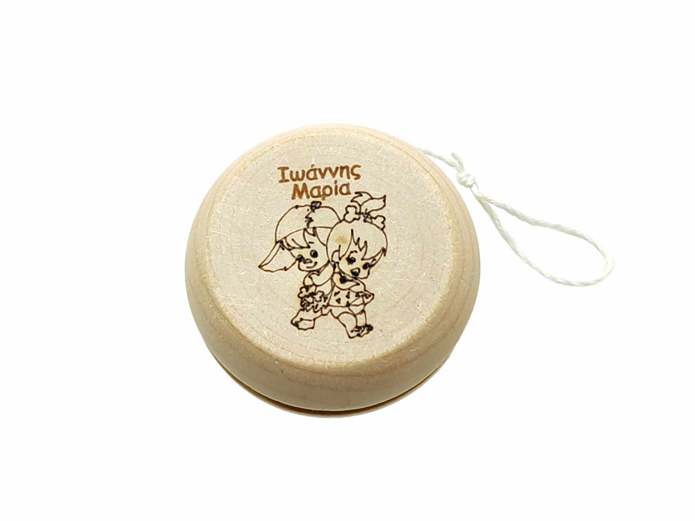 Ξύλινο ΓΙΟ ΓΙΟ σταλίτσα μπαμ μπαμ με το όνομα του παιδιού σας. Μπορεί να γίνει σε ότι σχέδιο ή θέμα θέλετε. Διάμετρος 5,5 εκ.