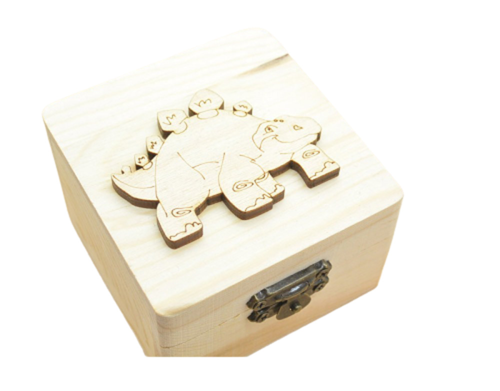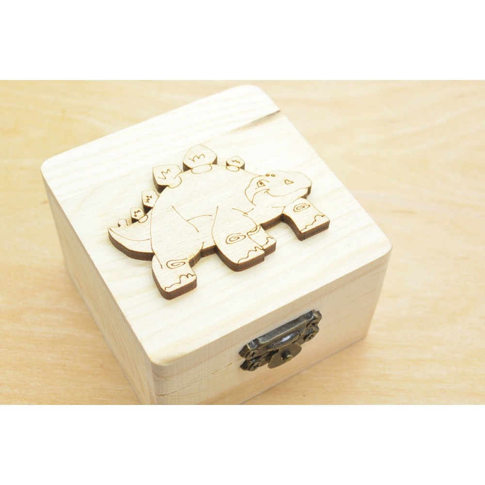 Ξύλινο κουτί δεινοσαυράκι. Διάσταση κουτί 8 x 8 x 5 cm.