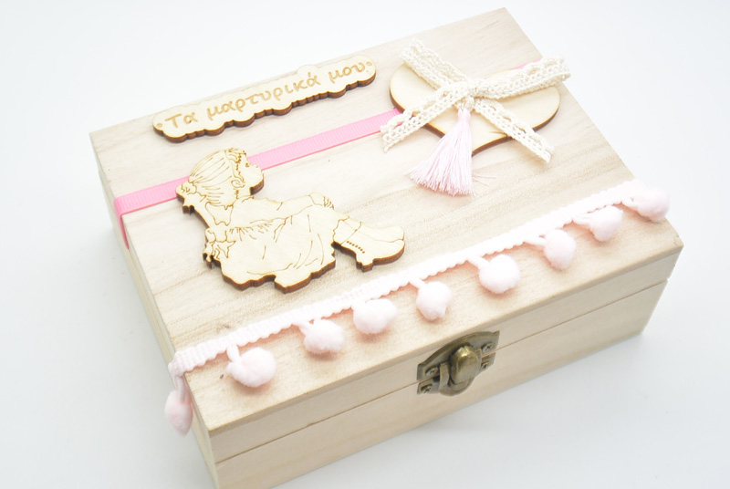 Ξύλινο Κουτί μαρτυρικών με θέμα sarah kay. Διαστάσεις εξωτερικές κουτιού Υ:8 x Π:20 x Μ:16 εκ. Μπορούν να αλλάξουν οι κορδέλες σε ότι χρώμα θέλετε.