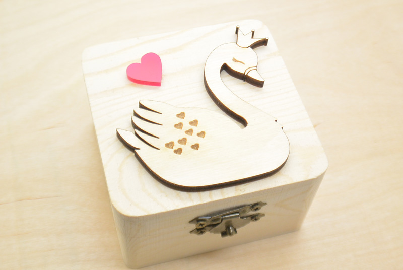 Ξύλινο κουτί κύκνος με λεπτομέρειες plexiglass. Μπορείτε να επιλέξετε το χρώμα στις λεπτομέρειες plexiglass. Διάσταση κουτί 8 x 8 x 5 cm. Η τιμή αφορά άδετο το αντικείμενο.