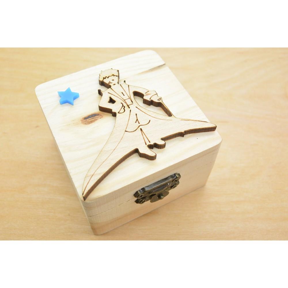 Ξύλινο κουτί μικρός πρίγκιπας με λεπτομέρειες plexiglass. Διάσταση κουτί 8 x 8 x 5 cm.