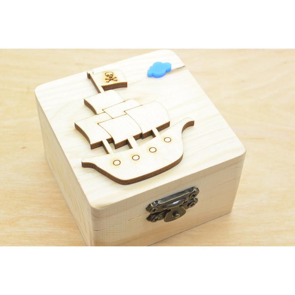 Ξύλινο κουτί πειρατικό καράβι με λεπτομέρειες plexiglass μπορείτε να επιλέξετε το χρώμα στις λεπτομέρειες plexiglass. Διάσταση κουτί 8 x 8 x 5 cm.