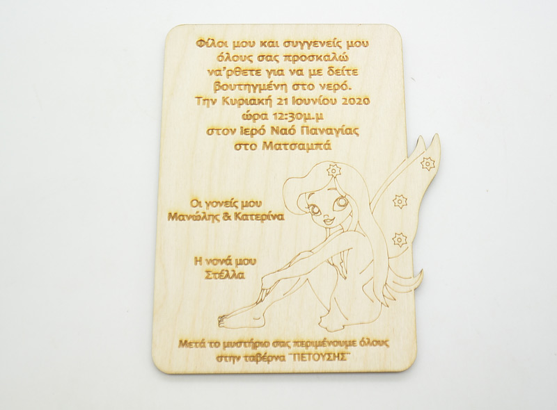 Ξύλινο Προσκλητήριο με θέμα νεράιδα. Διάσταση προσκλητηρίου 10.3 x 13.1 εκ.