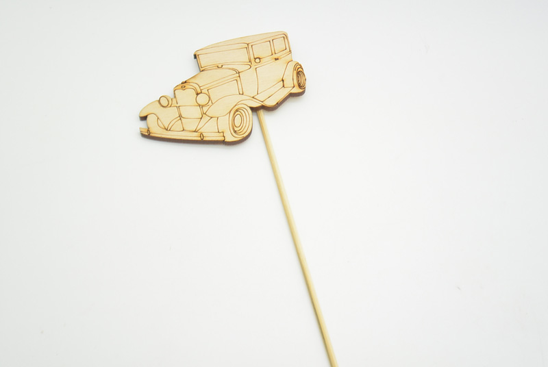 Ξύλινο Στικ αυτοκινητάκι αντίκα για μπομπονιέρες ή διακόσμηση βάπτισης. Το ξύλινο διακοσμητικό έχει διάσταση 8 εκ και αφορά την μεγαλύτερη διάσταση του διακοσμητικού είτε πλάτος είτε ύψος και το στικ έχει διάσταση 34 εκ.