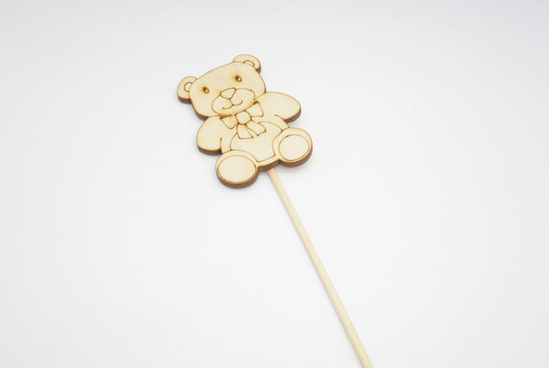 Ξύλινο Στικ αρκουδάκι για μπομπονιέρες ή διακόσμηση βάπτισης. Το ξύλινο διακοσμητικό έχει διάσταση 8 εκ και αφορά την μεγαλύτερη διάσταση του διακοσμητικού είτε πλάτος είτε ύψος και το στικ έχει διάσταση 34 εκ.