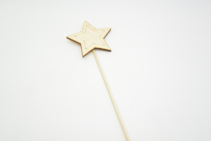 Ξύλινο Στικ αστεράκι για μπομπονιέρες ή διακόσμηση βάπτισης. Το ξύλινο διακοσμητικό έχει διάσταση 8 εκ και αφορά την μεγαλύτερη διάσταση του διακοσμητικού είτε πλάτος είτε ύψος και το στικ έχει διάσταση 34 εκ.