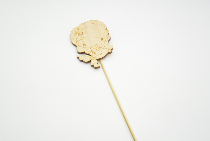 Ξύλινο Στικ γοργόνα για μπομπονιέρες ή διακόσμηση βάπτισης. Το ξύλινο διακοσμητικό έχει διάσταση 8 εκ και αφορά την μεγαλύτερη διάσταση του διακοσμητικού είτε πλάτος είτε ύψος και το στικ έχει διάσταση 34 εκ.