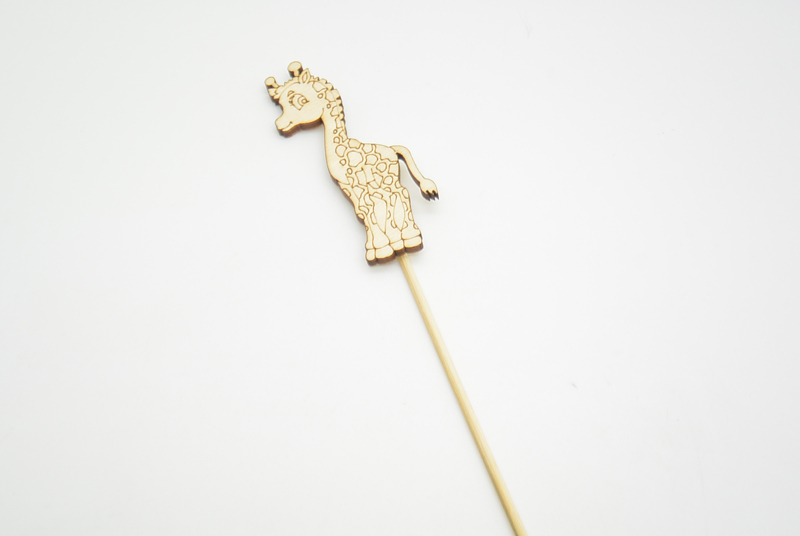 Ξύλινο Στικ καμηλοπάρδαλη για μπομπονιέρες ή διακόσμηση βάπτισης. Το ξύλινο διακοσμητικό έχει διάσταση 8 εκ και αφορά την μεγαλύτερη διάσταση του διακοσμητικού είτε πλάτος είτε ύψος και το στικ έχει διάσταση 34 εκ.