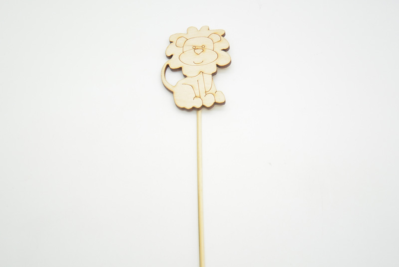 Ξύλινο Στικ λιονταράκι για μπομπονιέρες ή διακόσμηση βάπτισης. Το ξύλινο διακοσμητικό έχει διάσταση 8 εκ και αφορά την μεγαλύτερη διάσταση του διακοσμητικού είτε πλάτος είτε ύψος και το στικ έχει διάσταση 34 εκ.