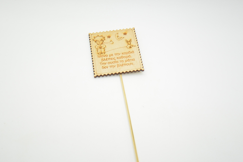 Ξύλινο Στικ μικρός πρίγκιπας γραμματόσημο για μπομπονιέρες ή διακόσμηση βάπτισης. Το ξύλινο διακοσμητικό έχει διάσταση 8 εκ και αφορά την μεγαλύτερη διάσταση του διακοσμητικού είτε πλάτος είτε ύψος και το στικ έχει διάσταση 34 εκ.