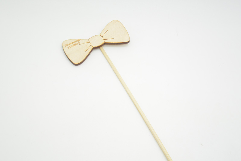 Ξύλινο Στικ παπιγιόν για μπομπονιέρες ή διακόσμηση βάπτισης. Το ξύλινο διακοσμητικό έχει διάσταση 8 εκ και αφορά την μεγαλύτερη διάσταση του διακοσμητικού είτε πλάτος είτε ύψος και το στικ έχει διάσταση 34 εκ.