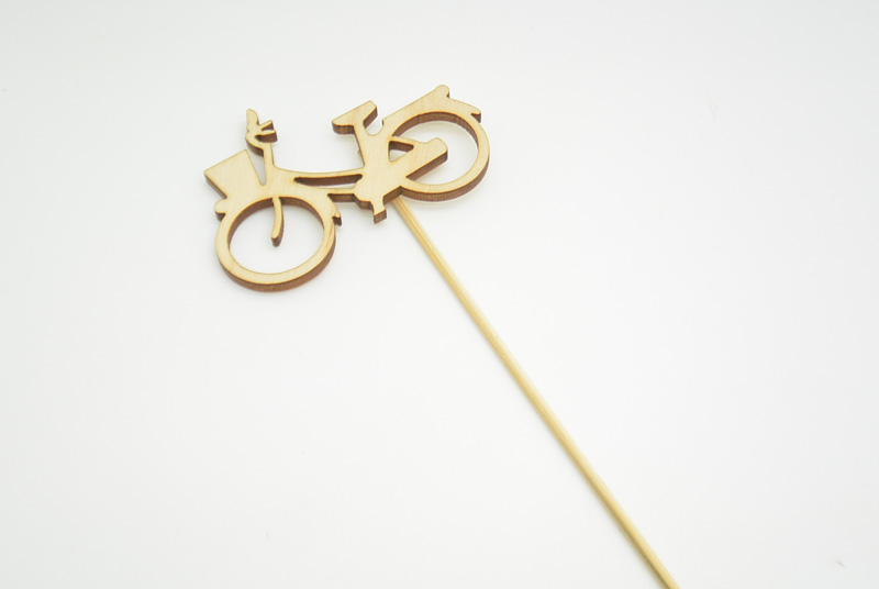 Ξύλινο Στικ ποδήλατο για μπομπονιέρες ή διακόσμηση βάπτισης. Το ξύλινο διακοσμητικό έχει διάσταση 8 εκ και αφορά την μεγαλύτερη διάσταση του διακοσμητικού είτε πλάτος είτε ύψος και το στικ έχει διάσταση 34 εκ.