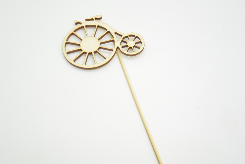 Ξύλινο Στικ ποδήλατο για μπομπονιέρες ή διακόσμηση βάπτισης. Το ξύλινο διακοσμητικό έχει διάσταση 8 εκ και αφορά την μεγαλύτερη διάσταση του διακοσμητικού είτε πλάτος είτε ύψος και το στικ έχει διάσταση 34 εκ.