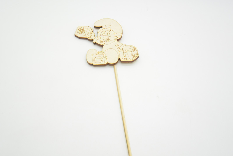 Ξύλινο Στικ στρουμφάκι για μπομπονιέρες ή διακόσμηση βάπτισης. Το ξύλινο διακοσμητικό έχει διάσταση 8 εκ και αφορά την μεγαλύτερη διάσταση του διακοσμητικού είτε πλάτος είτε ύψος και το στικ έχει διάσταση 34 εκ.