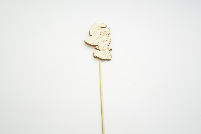 Ξύλινο Στικ στρουμφίτα για μπομπονιέρες ή διακόσμηση βάπτισης. Το ξύλινο διακοσμητικό έχει διάσταση 8 εκ και αφορά την μεγαλύτερη διάσταση του διακοσμητικού είτε πλάτος είτε ύψος και το στικ έχει διάσταση 34 εκ.