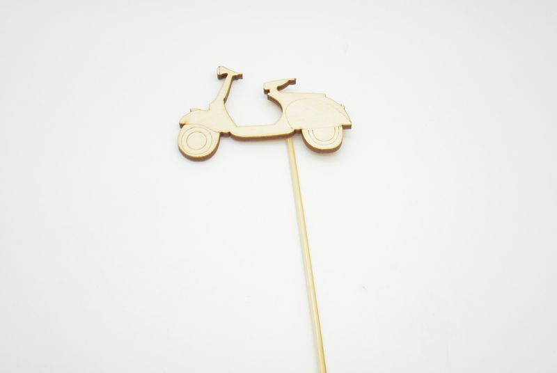 Ξύλινο Στικ βέσπα για μπομπονιέρες ή διακόσμηση βάπτισης. Το ξύλινο διακοσμητικό έχει διάσταση 8 εκ και αφορά την μεγαλύτερη διάσταση του διακοσμητικού είτε πλάτος είτε ύψος και το στικ έχει διάσταση 34 εκ.