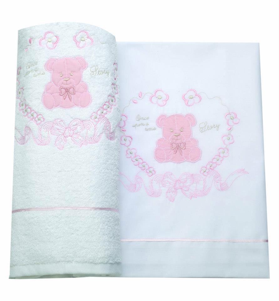 Λαδόπανα Βάπτισης με θέμα αρκουδάκι ελληνικής κατασκευής άριστης ποιότητας βαμβακερά. Το σετ περιλαμβάνει πετσέτα μικρή και μεγάλη, σεντονάκι και σετ εσώρουχα.