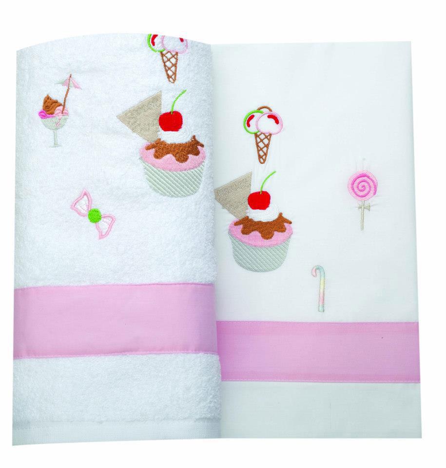 Λαδόπανα Βάπτισης με θέμα γλυκάκια ελληνικής κατασκευής άριστης ποιότητας βαμβακερά. Το σετ περιλαμβάνει πετσέτα μικρή και μεγάλη, σεντονάκι και σετ εσώρουχα.