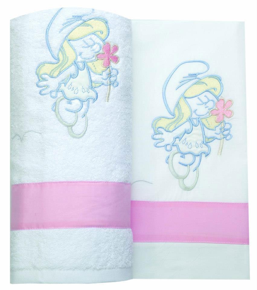 Λαδόπανα Βάπτισης με θέμα στρουμφίτα ελληνικής κατασκευής άριστης ποιότητας βαμβακερά. Το σετ περιλαμβάνει πετσέτα μικρή και μεγάλη, σεντονάκι και σετ εσώρουχα.